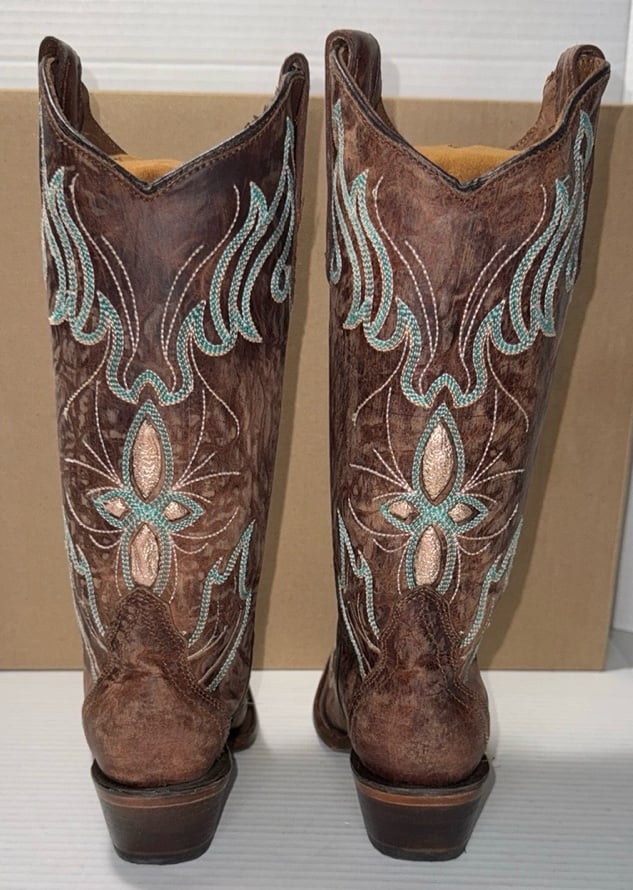 Circle G by Corral Ladies Brown Inlay Turquoise Embroidered Western Boots L5961